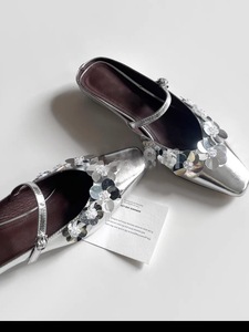 フレンチスタイルスクエアトゥ本革高さ増加メリージェーンシューズ女性用2025新作浅い口ワンライントゥハーフスリッパ