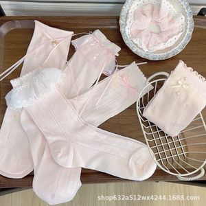 春夏粉色系少女粉可爱ins堆堆袜甜美镂空蝴蝶结花边公主袜日系