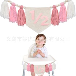2025年クロスボーダーベビーハイチェアバナーウールタッセル誕生日1歳と1/2の誕生日写真アレンジメント