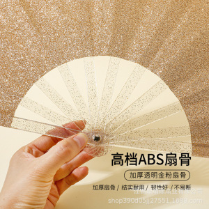 8inch透明金粉扇骨:シャンパンゴールド扇面