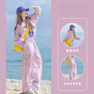 女性用ソルトフライストリートスポーツウェアスーツ、夏のゆったりとしたファッショナブルな日焼け止めジャケット、ズボン、カジュアルランニングレディースウェアトレンド