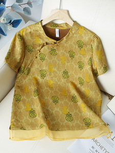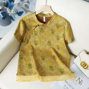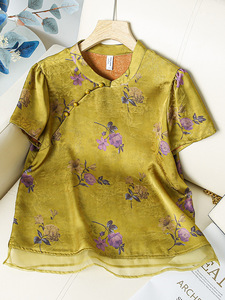 西洋風のプリント、年齢を軽減する気質、女性用の多用途トップス、新しい中国風の国民風シャツ、夏のファッションのスプライシング半袖Tシャツ