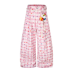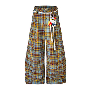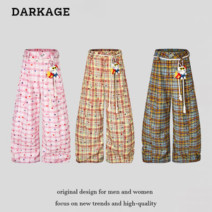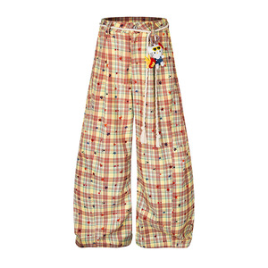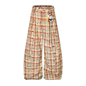 2025 新しいアメリカンレトロチェック柄ステッチドーパミンコントラストカラーミトンパンツワイドレッグパンツ多用途カジュアルロングパンツ