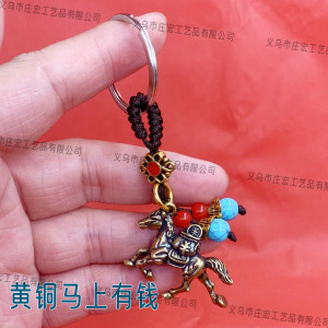 真鍮馬の富キーホルダーペンダント干支馬年マスコット幸運の馬マネーバッグ五帝マネージュエリー卸売