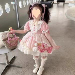 女の子ロリータピンクふわふわプリンセスドレス半袖1歳ベビーガールドレス宮殿風ドレス