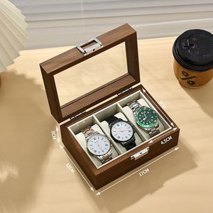 スポットウォールナット木目調時計ボックス時計収納コレクションディスプレイボックス一体型時計取り外し可能防塵