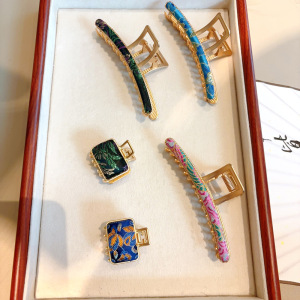 [完成品] マルチカラー無形文化遺産手作りシルク宋錦手作り新中国風レトロ帽子ヘアピンヘアピン