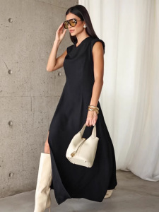 フレンチレトロエレガントな黒のスイングカラードレス女性のための 2025 秋気質 A ヘムノースリーブベストドレス女性のための