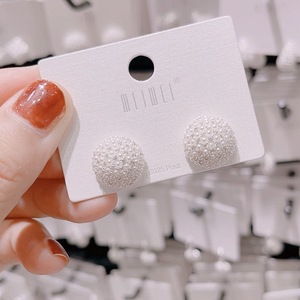 美薇饰品小米珠耳钉锆石微镶几何形爱心耳钉女高级感饰品耳饰批发