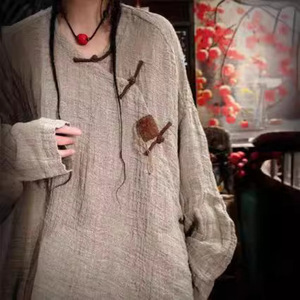 Yimu Lolan 231216 テクスチャードリネン刺繍長袖オリジナルリネンボタンシャツトップ文学レトロ