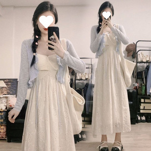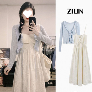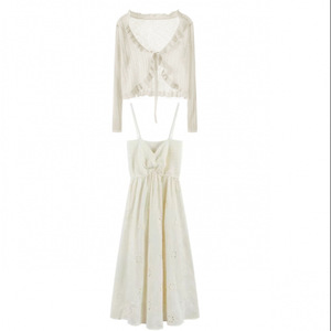 サスペンダースカート+アプリコットイヤリングカーディガン