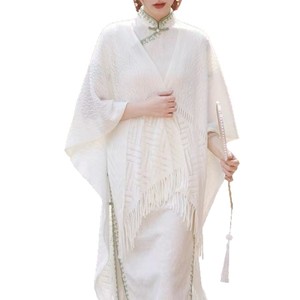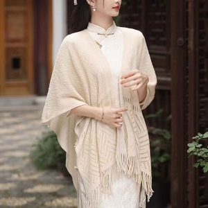 新しいスタイルの中空タッセル多用途オフホワイトショールチャイナドレス付き中華民国スタイルマントスカーフエアコンシャツ旅行カーディガン