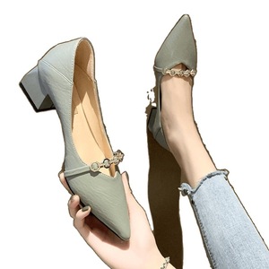 フェアリースタイルオールシーズンシューズ2025夏新作ハイヒールミッドヒールポインテッドトゥ太いヒールスカート付きロートップシューズ