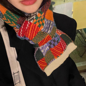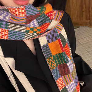 复古民族风彩格格子围巾 秋冬个性潮单品学生情侣保暖围脖男女