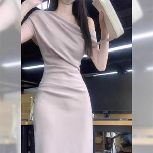 夏のフレンチデザインのスイングカラーシルダースカート、不規則なウエスト、ホットガール気質、新しいロングスカート、プリーツドレス