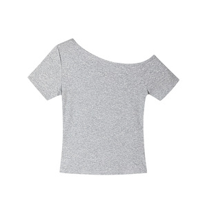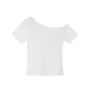 220 グラムホットガールショート Tシャツ女性のための 2025 夏の新しいスリムフィットニッチデザイン斜め肩トップトレンディ