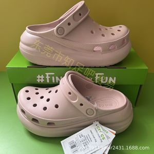 2025新款泡芙厚底增高防滑透气半托女款户外洞洞鞋(一件代发)