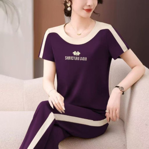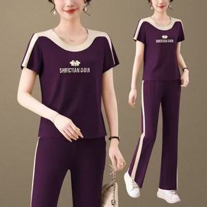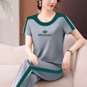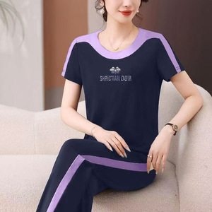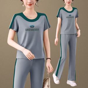 ヨーロッパとアメリカの国境を越えた貿易夏大きいサイズラウンドネックファッショナブルでエレガントなカジュアルスクエアダンスツーピース半袖スポーツスーツ