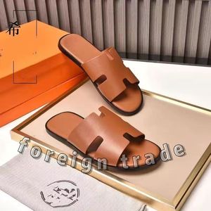 牛革夏 2025 スリッパメンズ新ファッションヨーロッパトレンド本革ワンラインノンスリップサンダルホットスタイル