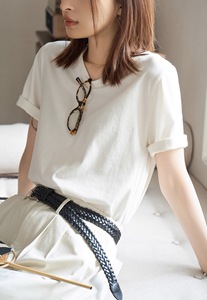 『白描』『綿の中のソフト』ベーシックモデル2025新作レディース夏半袖Tシャツトップス