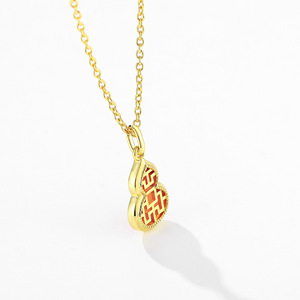 中国のトレンドレトロ象嵌赤瑪瑙ひょうたんペンダント非退色金メッキネックレスジュエリー加工カスタマイズ重量 3.26 グラム