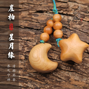 本物のシダーウッド彫刻ペンダントスタームーンバッグ携帯電話ペンダントクリエイティブペンダントペンダントアクセサリークラフトギフト