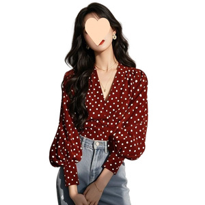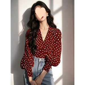 水玉模様フレンチ2025新作ニッチデザインシックな新年ネックフラワー気質長袖シャツシャツトップ
