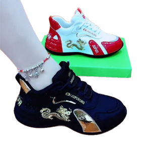 跨境外贸春季新款男女龙年情侣皮蓬增高鞋时尚潮流透气软底老爹鞋