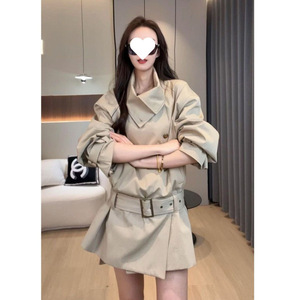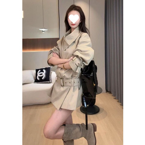 高級感のあるエレガントな小柄な女性向けのカーキスタンドカラーショートウインドブレーカージャケット2025春の新作