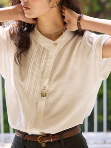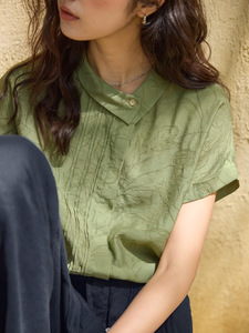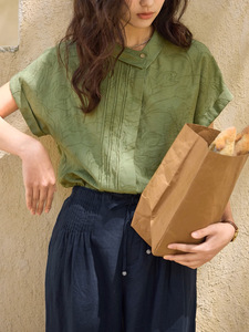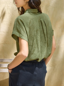 ライター フレンチリネンジャガード アシンメトリーラペル半袖シャツ レディース