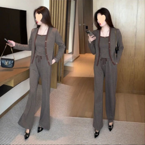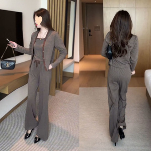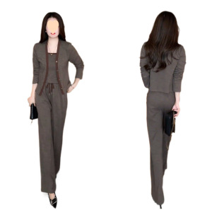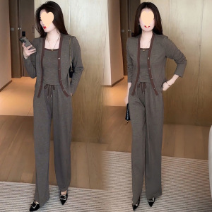 早秋洋气减龄休闲运动套装女士春秋新款时尚纯色开衫阔腿裤三件套