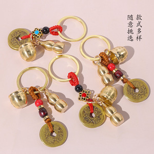 新款黄铜迷你百福缸五帝钱铜葫芦钥匙扣汽车钥匙挂件厂家批发