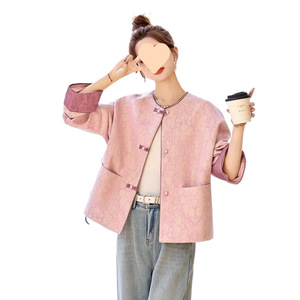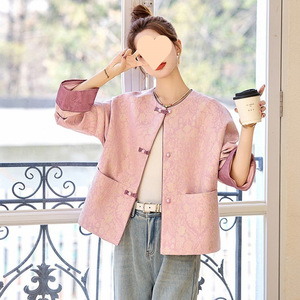 2025 春の新作中国風ジャカードジャケット女性のハイエンドファッショナブルな西洋スタイルレトロ小柄な多用途トップ