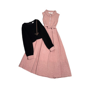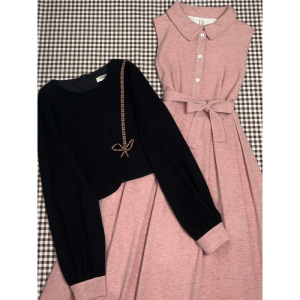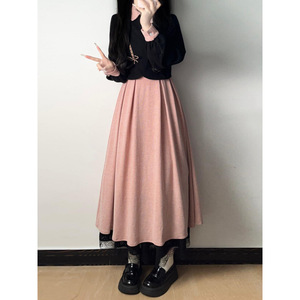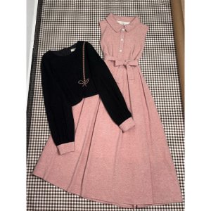 春と秋の女性向けの少し太ったピンクのベストドレス、カレッジスタイルのハイエンドの着用、ロングスカートのフルセット