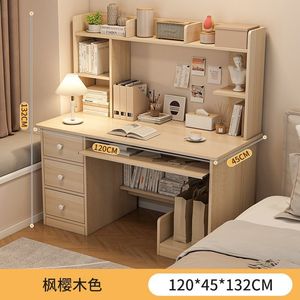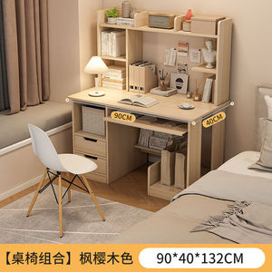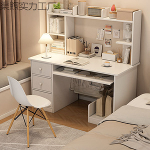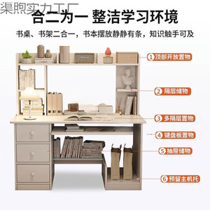 电脑桌家用学生书桌书架一体学习桌子工作台简易出租屋台式办公桌