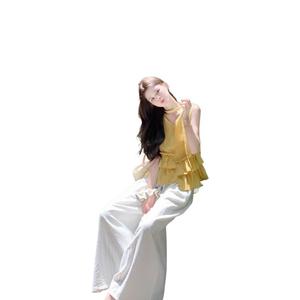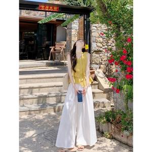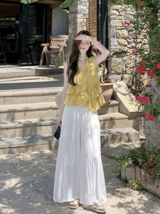 2025 夏の新デザイン黄色水玉模様のフリルノースリーブベストワイドレッグカジュアルパンツファッションスーツ女性のための