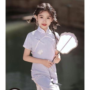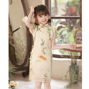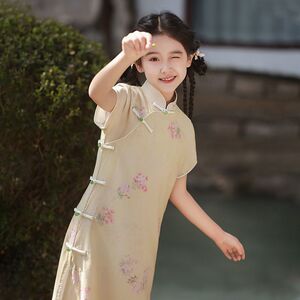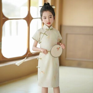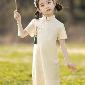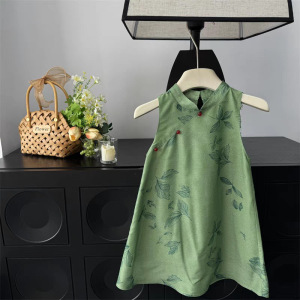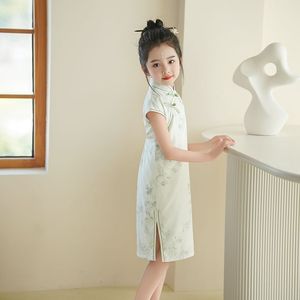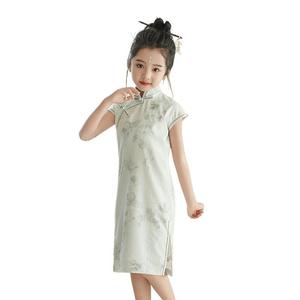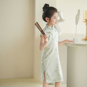 グリーンガールチャイナドレス夏薄い新鮮な中国風のドレス少女キャットウォーク古筝パフォーマンス服デイリー