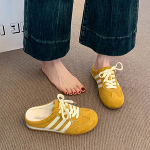 包头半拖鞋女外穿2025新款超火黄色德训鞋懒人一脚蹬凉拖鞋子女鞋