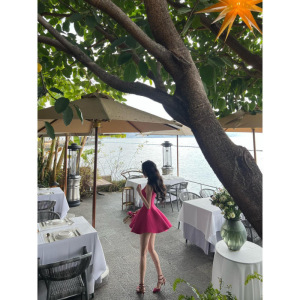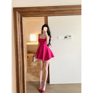 小柄な女性向けのフレンチスタイルのドレス、高級感と絶妙なセレブスタイルのリボンドレス、サスペンダースカート