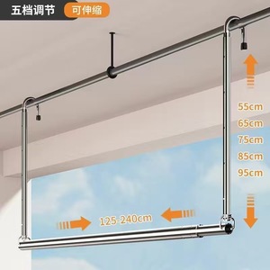 ステンレス製物干しロッド、バルコニー屋内物干し、物干し用品、吊り下げ物干しラック、工場直送