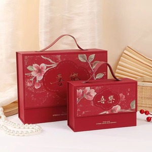轻奢国风手提喜乐伴手礼盒婚庆用品烫金喜糖盒订婚回礼翻盖礼品盒