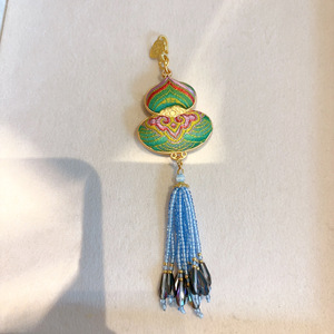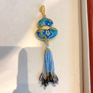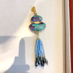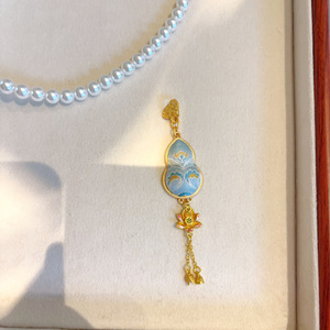 レイクブルー両面ひょうたん、蓮のペンダント付き