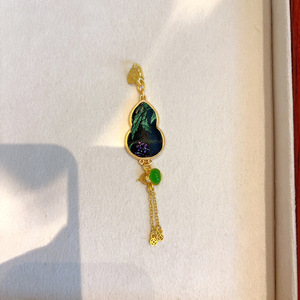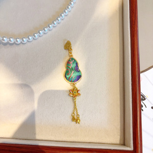 グリーンシダ両面ひょうたんと蓮のペンダント