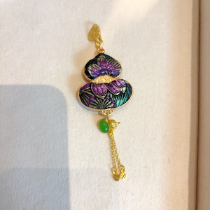 紫緑の片面ひょうたん、蓮のペンダント付き