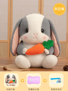 グレーと白のピンクうさぎセット【全店湯たんぽ3年保証】
