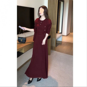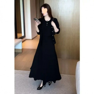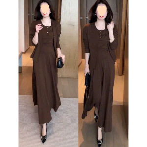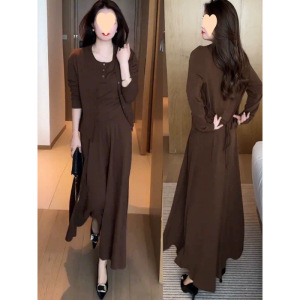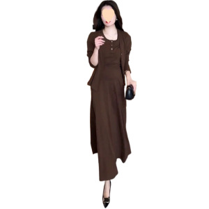 春と秋の新作初秋スタイル年齢軽減カジュアル弾性スカートレディースファッション無地トップカーディガンスカート3点セット