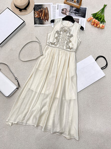 2025 夏の新スタイル Nanyou dio フレンチファッションデザイン多用途スプライシングラウンドネックノースリーブロングドレス女性のための