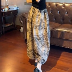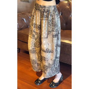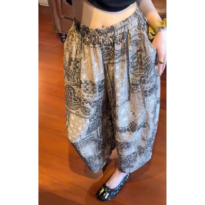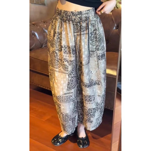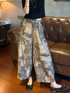 2025 夏レトロプリント薄型ルーズワイドレッグシミターパンツハイウエストカジュアル気質シックな多用途パンツ