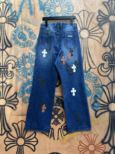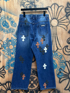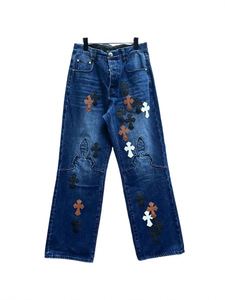 顶版CH克罗remake十字架拼皮梵文直筒水洗牛仔裤男女款拼接设计