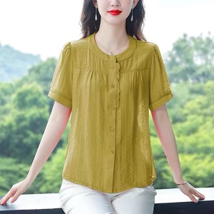 綿とリネンのシャツレディースサマードレス2025新しいスタイルママスタイルルーズスリム半袖トップス大きいサイズシャツ